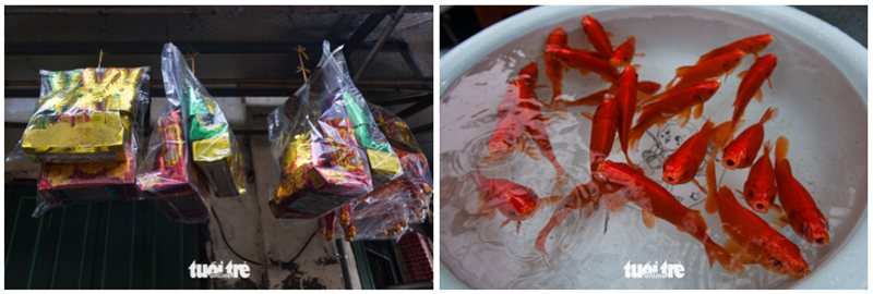 Красного карпа, которого использовали в ритуале отправки на небеса Земельного джинна и Кухонных богов, продавали по цене 50 000–100 000 донгов за три рыбы.