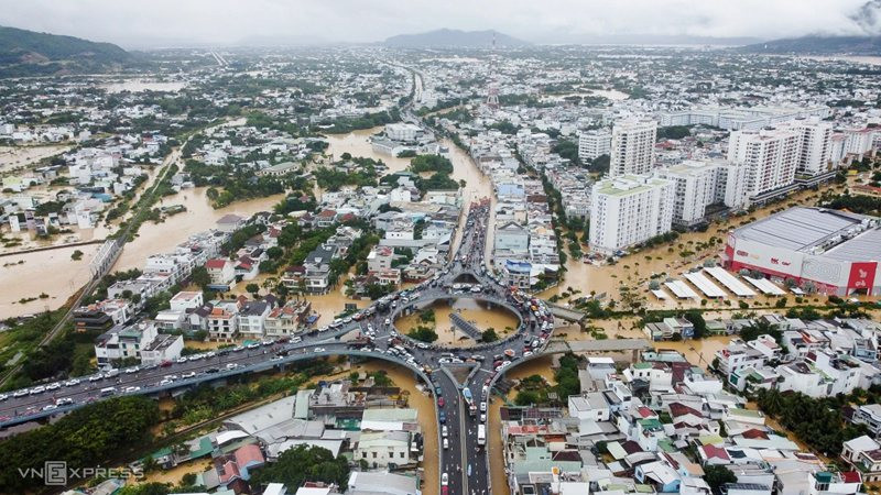 Улица 23 Thang 10, ключевая артерия на въезде в район Тай Нячанг, была затоплена на глубину более метра.