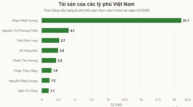 Двое руководителей Vingroup и председатель VPBank были включены Forbes в список мировых миллиардеров, в результате чего общее число вьетнамских миллардеров достигло 8 человек.